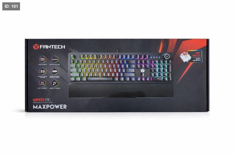 Fantech MaxPower MK853 (V2) ميكانيكية كاملة بحجم 104 مفتاحًا، مزودة بخيار سويتشات أزرق أو أحمر لتحكم وسرعة حسب تفضيلك. تتميز بدعم مكافحة الظلال الكامل (Anti-Ghosting) لتسجيل كل ضغطة بدقة، وإضاءة RGB متدرجة بـ 22 وضعًا مختلفًا. مصنوعة بغطاء علوي معدني وكابلات مضفرة، وتتحمل المفاتيح حتى 50 مليون نقرة. كما تحتوي على مسند معصم مريح، ومقبض لضبط مستوى الصوت، ومفاتيح وسائط مخصصة لتسهيل الاستخدام اليومي.