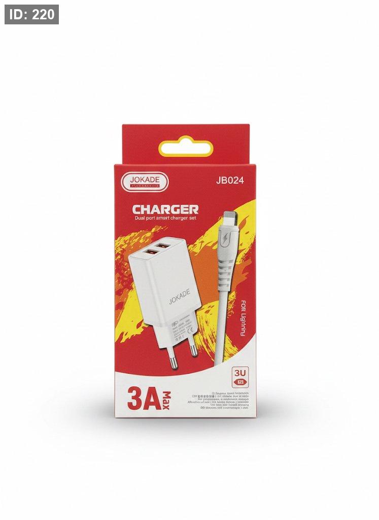 شاحن Jokade JB024 Lightning 3A Max مخصص لأجهزة Apple المزودة بمنفذ Lightning مثل iPhone وiPad وiPod. يدعم الشاحن تيار شحن يصل إلى 3 أمبير، ما يوفر شحنًا سريعًا وآمنًا للأجهزة. يتميز الكابل المدمج بسهولة الاستخدام دون الحاجة إلى كابل إضافي، ويعدّ خيارًا عمليًا للاستخدام اليومي في المنزل، المكتب، أو أثناء التنقل.