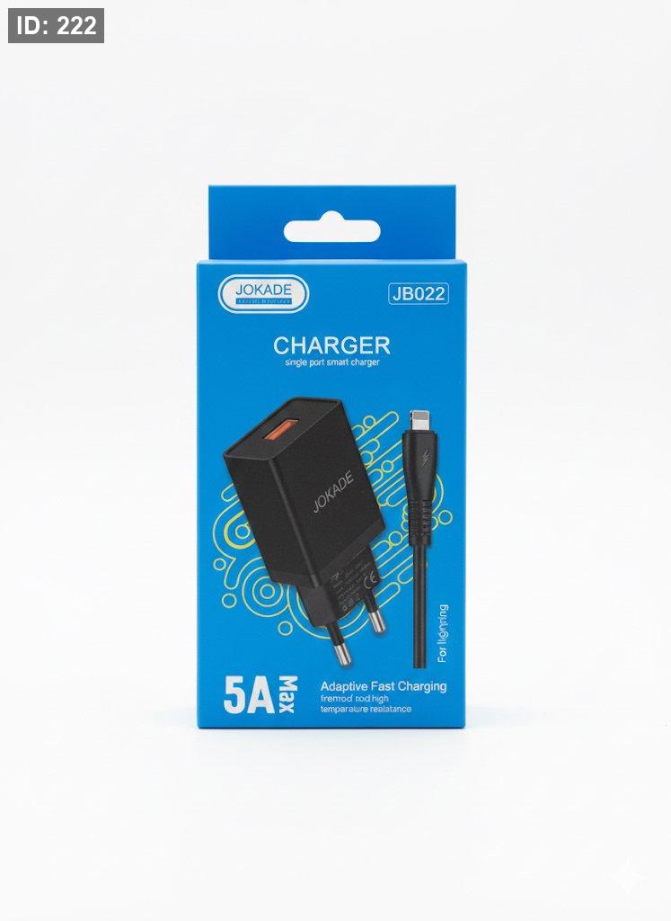 شاحن JOKADE JB022 5A MAX Lightning مصمم خصيصًا لأجهزة Apple المزودة بمنفذ Lightning مثل iPhone وiPad وiPod. يأتي مزوّدًا بكابل Lightning مدمج مع دعم شحن سريع حتى 5 أمبير، ما يوفر شحنًا آمنًا وسريعًا للأجهزة الحديثة. يتميز هذا الشاحن بسهولة الاستخدام، حيث يمكن توصيله مباشرة بالجهاز دون الحاجة إلى كابل إضافي، ويعد خيارًا عمليًا للاستخدام اليومي في المنزل أو المكتب أو أثناء السفر.