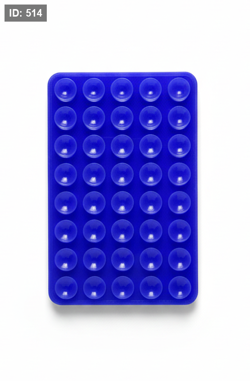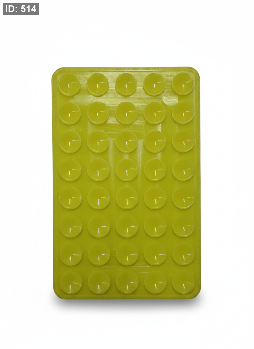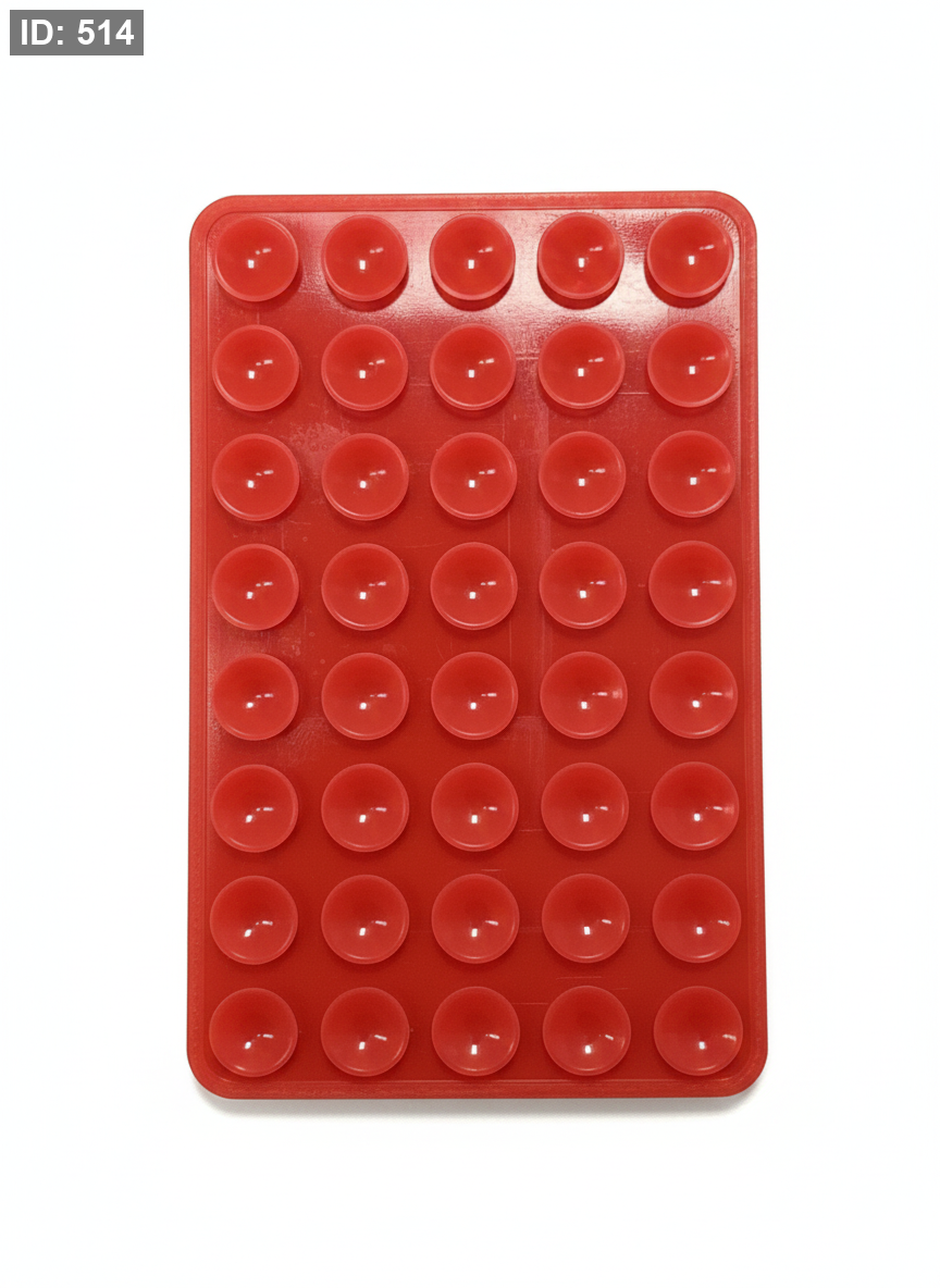 التصميم: قطعة مستطيلة مزودة بـ 24 كوب شفط صغير (Suction Cups) موزعة بانتظام لضمان قوة الالتصاق، مع حلقة سفلية مدمجة لزيادة الثبات أثناء الإمساك باليد.