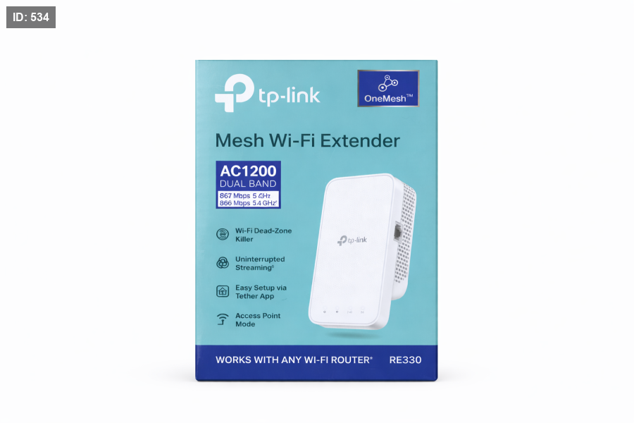 جهاز TP-Link RE330 مقوّي إشارة واي فاي بتقنية Mesh (OneMesh™)، مصمم للتخلّص من المناطق الضعيفة في الشبكة وتوسيع تغطية الإنترنت في المنزل أو المكتب. يعمل بسرعة عالية وثبات ممتاز مع أغلب أجهزة الراوتر.