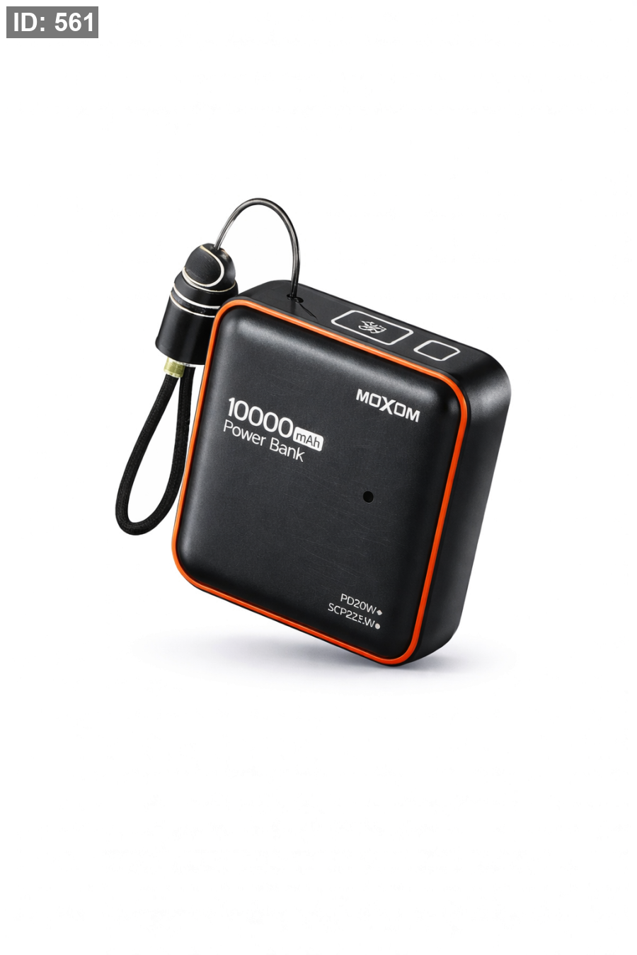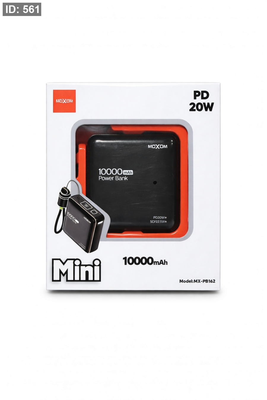 باور بانك صغير الحجم من Moxom بسعة 10000mAh مع شحن سريع PD 20W، مصمم ليكون خفيف وسهل الحمل في الجيب أو الحقيبة، مثالي للاستخدام اليومي والسفر.