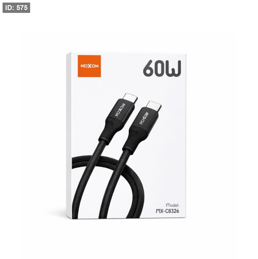 كيبل شحن سريع من Moxom بقدرة تصل إلى 60 واط، مصمم لشحن الأجهزة بسرعة وكفاءة مع تصميم قوي يدعم الاستخدام اليومي.
