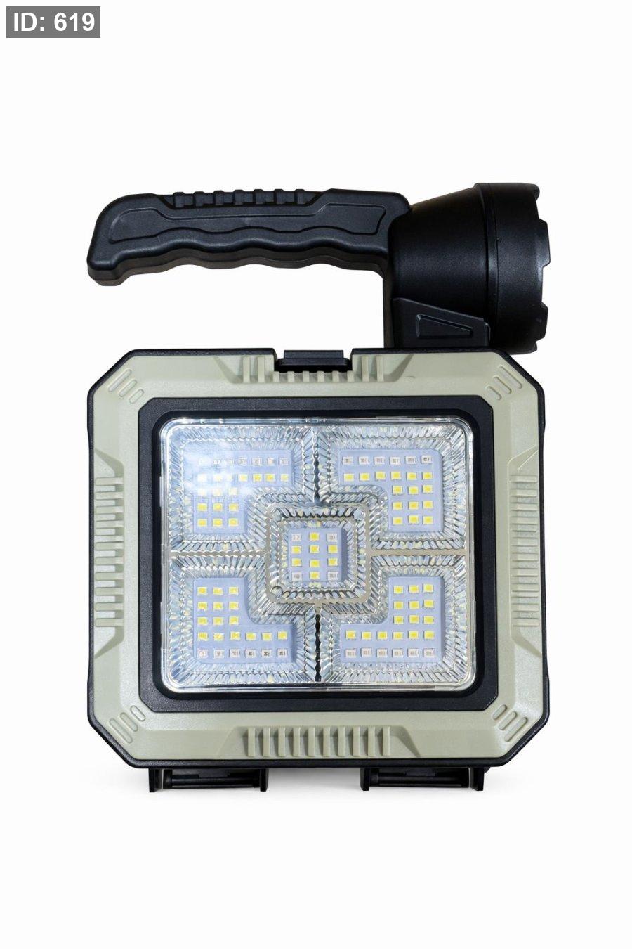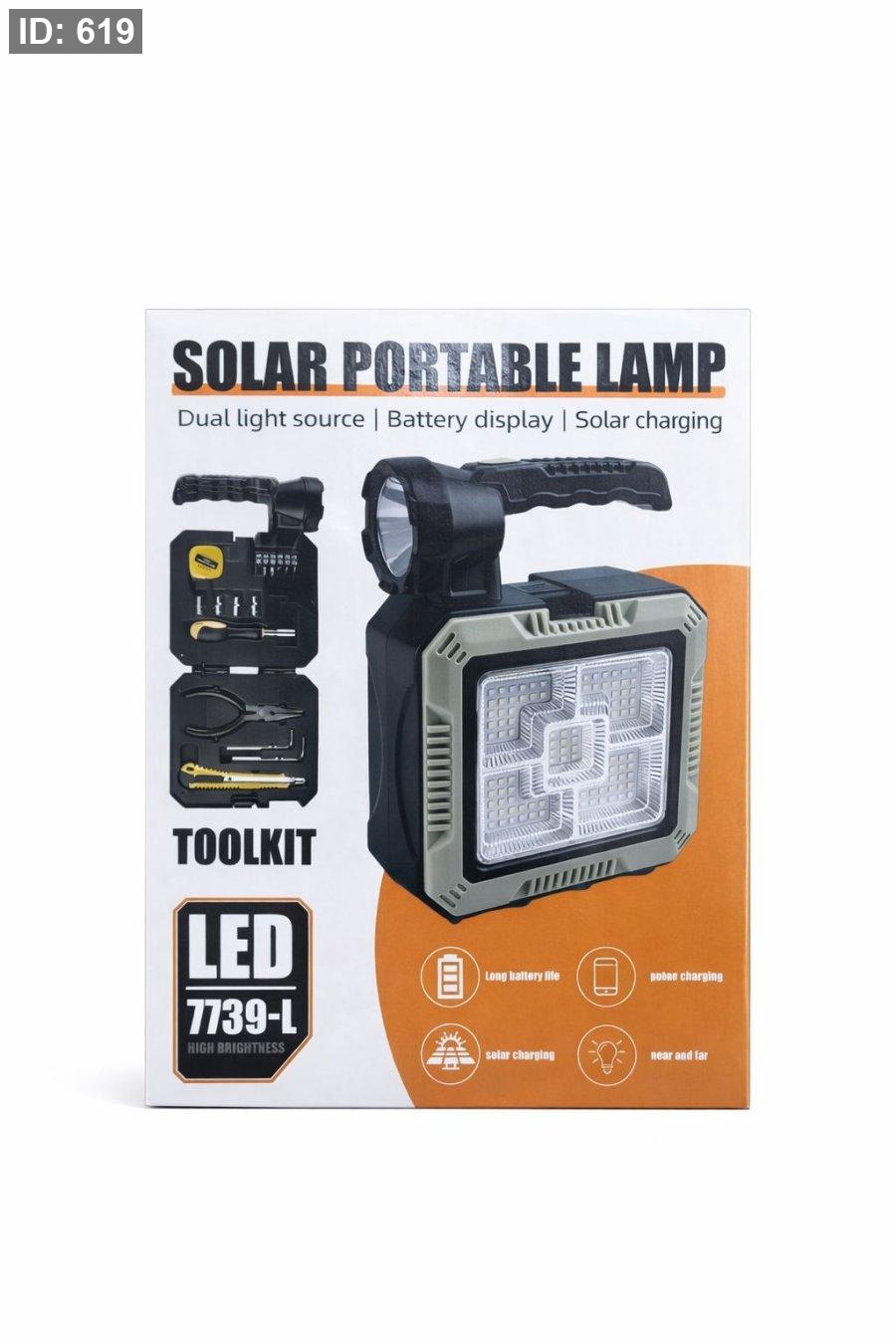 مصباح LED محمول يعمل بالطاقة الشمسية مزود بإضاءة قوية وأدوات متعددة (Toolkit)، مصمم للاستخدام في الرحلات، التخييم، الطوارئ، وأعمال الصيانة.