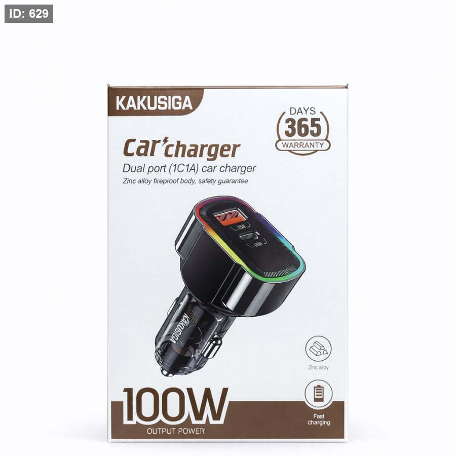 شاحن سيارة قوي من KAKUSIGA مزود بمنفذين للشحن السريع، يتيح شحن الهواتف والأجهزة الذكية بسرعة عالية أثناء القيادة.