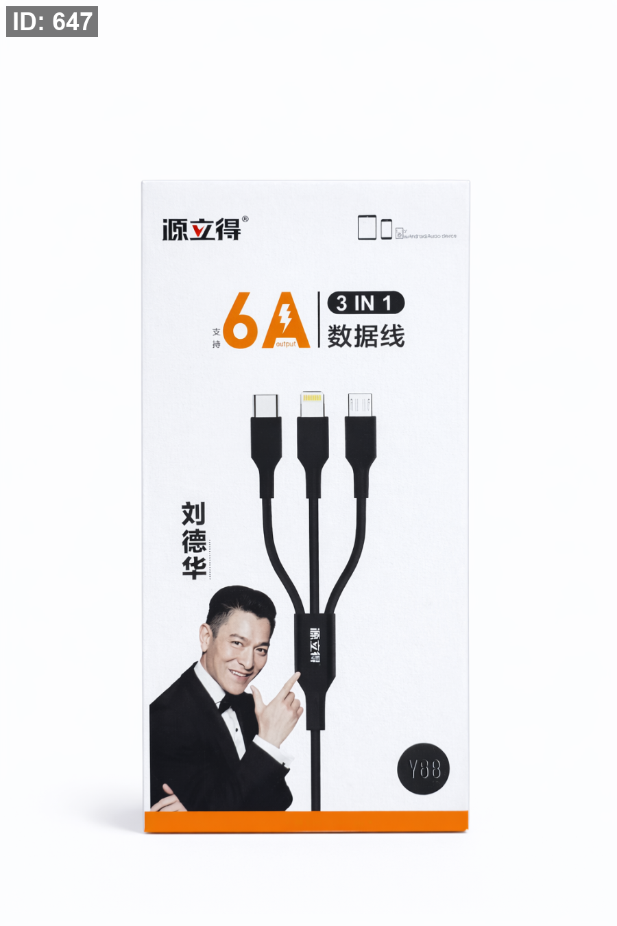 كابل شحن متعدد الاستخدامات يتيح لك شحن عدة أجهزة باستخدام كابل واحد فقط. يتميز بثلاثة رؤوس مختلفة لتوافق واسع مع معظم الأجهزة، مع دعم الشحن السريع بقوة تصل إلى 6 أمبير.