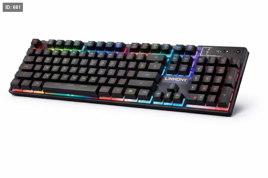 كيبورد ألعاب احترافي مصمم لمحبي الألعاب والكمبيوتر، يتميز بإضاءة LED ملونة وتصميم مريح مع أزرار متعددة الوسائط لتجربة استخدام أفضل أثناء اللعب أو العمل.