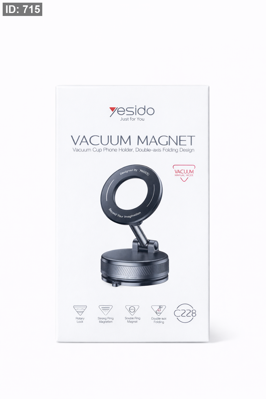 حامل هاتف مغناطيسي بتقنية Vacuum Cup يوفر تثبيتًا قويًا وآمنًا للهاتف على مختلف الأسطح مثل الزجاج والطاولة ولوحة السيارة. يتميز بتصميم مفصلي مزدوج قابل للطي مع دوران كامل لسهولة تعديل زاوية الرؤية.
