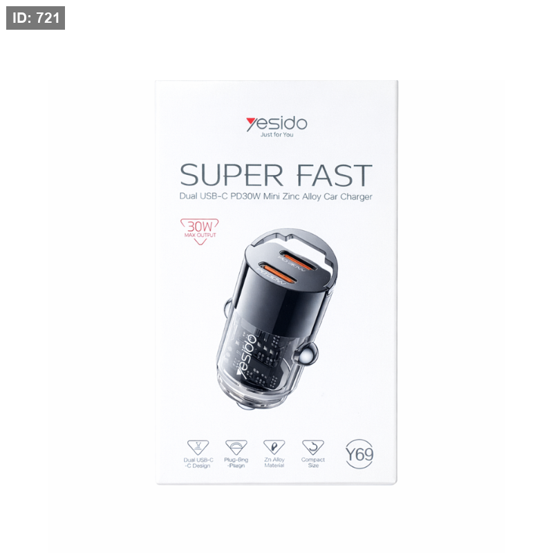شاحن سيارة صغير الحجم يدعم الشحن السريع حتى 30W مع منفذين USB-C لشحن جهازين في نفس الوقت. مصنوع من سبائك الزنك المتينة مع تصميم مدمج يناسب جميع السيارات.
