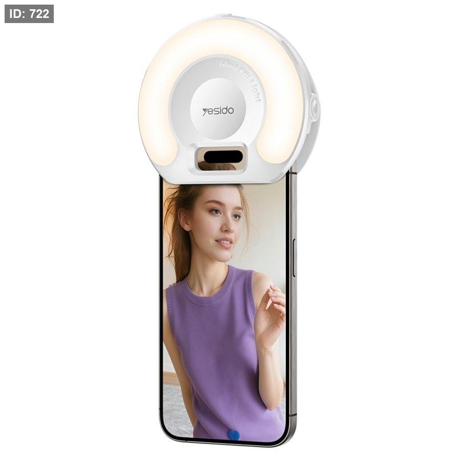 إضاءة سيلفي دائرية صغيرة توفر إضاءة ناعمة ومتوازنة للصور والفيديو. تُثبت بسهولة على الهاتف بواسطة مشبك سيليكون وتساعد على تحسين جودة الإضاءة أثناء التصوير أو البث المباشر.