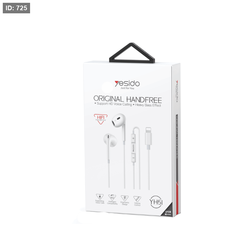 سماعات أذن سلكية عالية الجودة من Yesido مزودة بمنفذ Lightning، تقدم صوت واضح مع Bass قوي ومكالمات HD. تصميم مريح للاستخدام اليومي مع أزرار للتحكم بالموسيقى والمكالمات بسهولة.