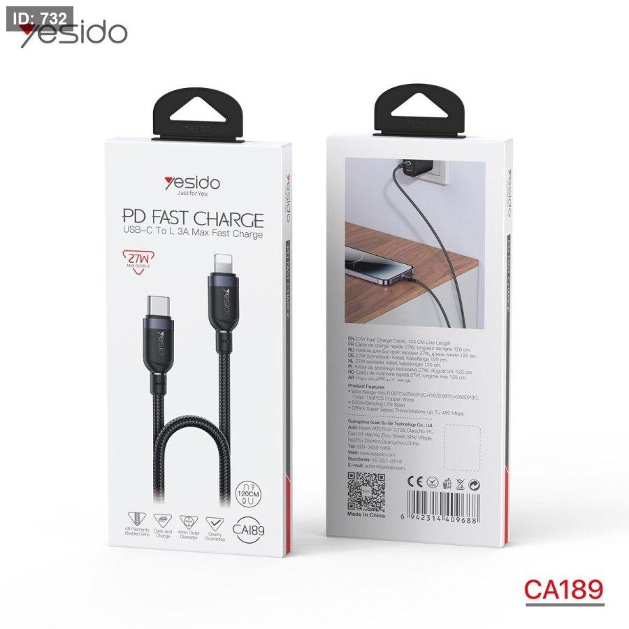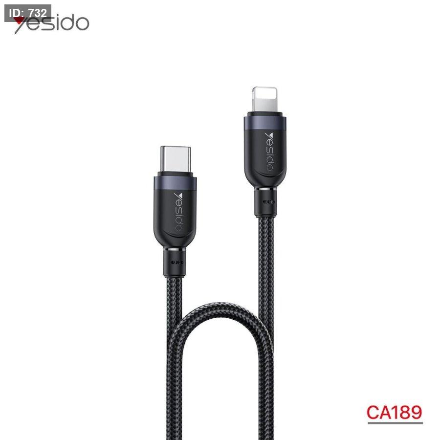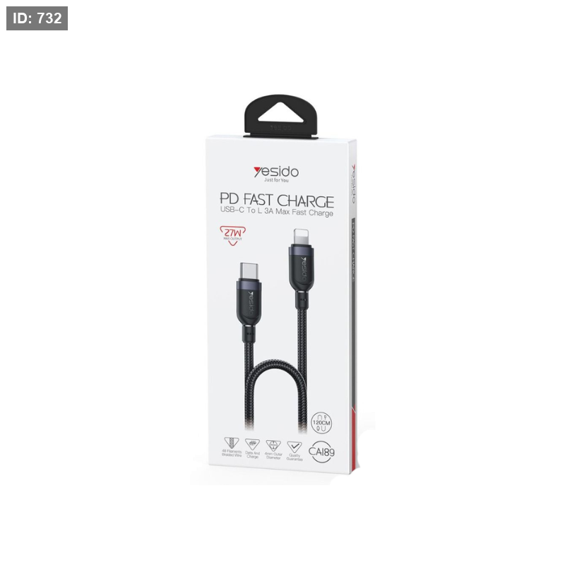 كابل شحن سريع من Yesido بمنفذ TYPE-C إلى Lightning يدعم تقنية Power Delivery حتى 27W لشحن أجهزة iPhone بسرعة وكفاءة. يتميز بتصميم مضفر قوي يوفر متانة عالية مع دعم نقل البيانات، بطول مناسب للاستخدام اليومي.