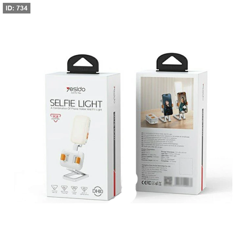 مصباح سيلفي متعدد الاستخدامات من Yesido يجمع بين إضاءة احترافية وحامل هاتف في جهاز واحد. يوفر إضاءة RGB مع عدة أوضاع للإضاءة، ويتميز بتصميم قابل للطي مع إمكانية تدوير الحامل 360° للحصول على أفضل زاوية تصوير.