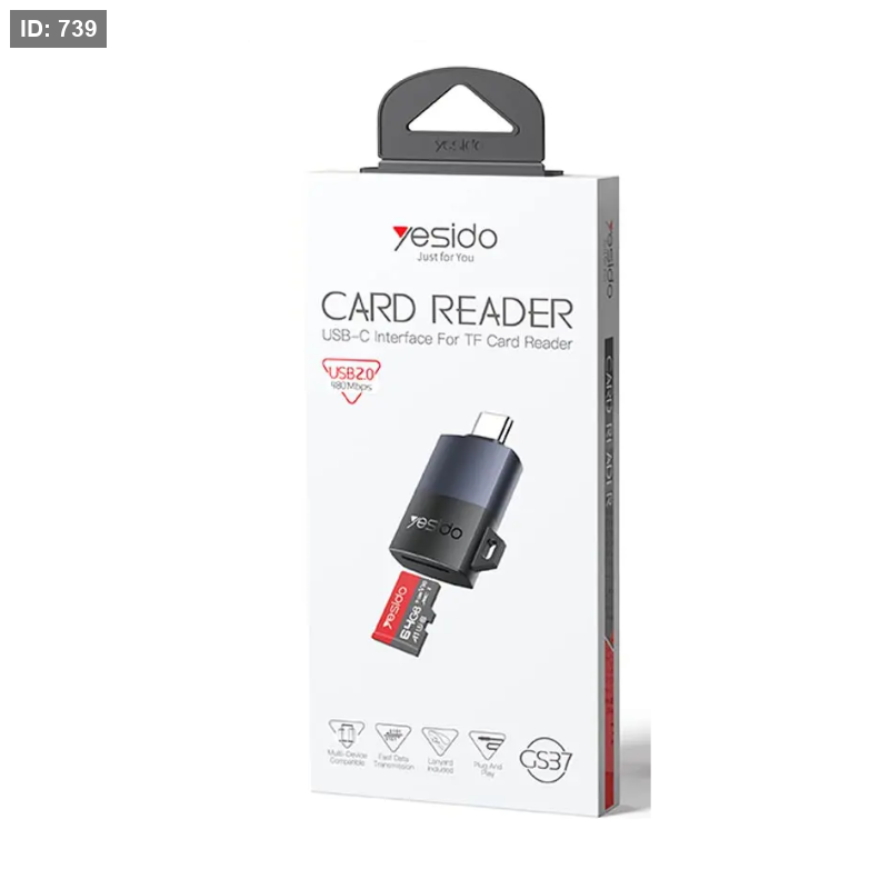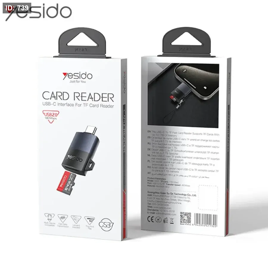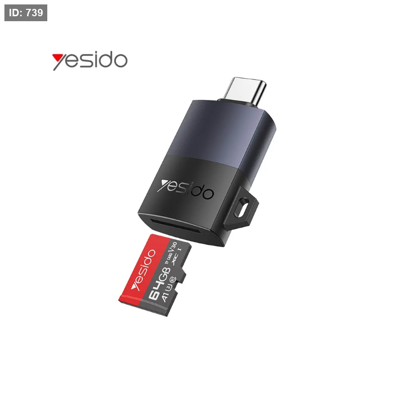 قارئ كروت ذاكرة صغير وعملي من Yesido مزود بمنفذ TYPE-C لقراءة كروت Micro SD (TF) بسهولة ونقل البيانات بسرعة عالية. يتميز بتصميم خفيف وسهل الحمل مع دعم التوصيل المباشر دون الحاجة لتثبيت برامج.