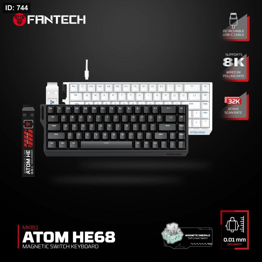 كيبورد ألعاب احترافي من Fantech موديل ATOM HE68 MK811 مزود بتقنية Magnetic Switch (Magnetic Emerald) التي توفر دقة وسرعة استجابة فائقة أثناء اللعب. يتميز بتصميم مدمج بعدد 68 مفتاح مع اتصال سلكي مستقر ومعدل استجابة مرتفع مناسب للاعبين المحترفين.