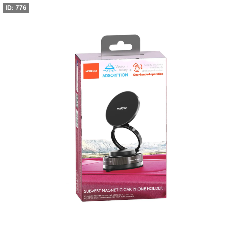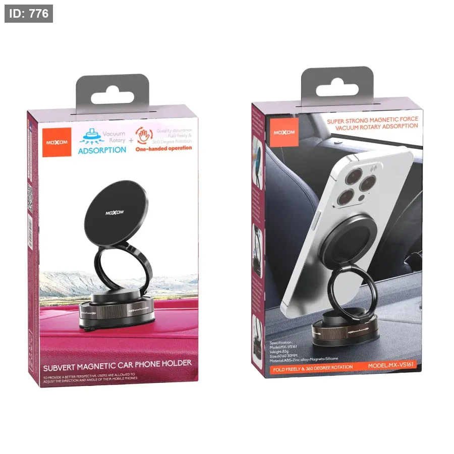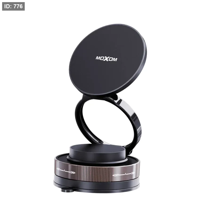 حامل جوال مغناطيسي من MOXOM مصمم ليعطيك تثبيت قوي وثابت داخل السيارة باستخدام تقنية الشفط (Vacuum Adsorption)، مع إمكانية تدوير 360 درجة لسهولة الاستخدام أثناء القيادة.
