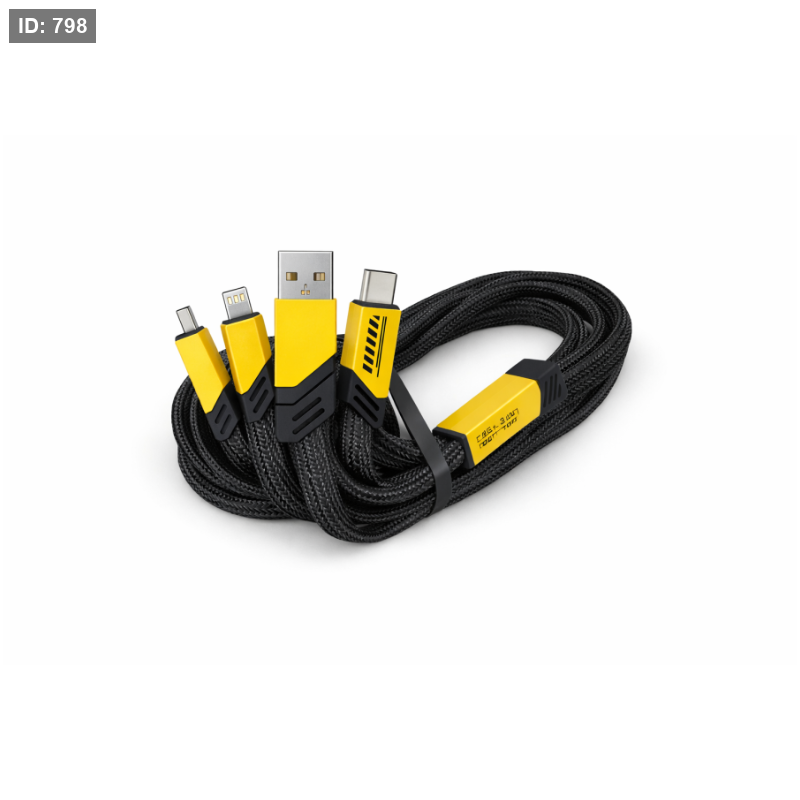 كيبل شحن عملي يجمع 3 رؤوس مختلفة في سلك واحد، مناسب لشحن جميع الأجهزة تقريباً (أندرويد، آيفون، أجهزة قديمة)، مع تصميم قوي ومتين للاستخدام اليومي.