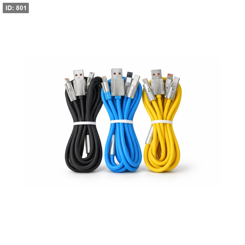 كيبل شحن متعدد الاستخدام يجمع 3 رؤوس في سلك واحد، مناسب لجميع الأجهزة (آيفون + أندرويد)، مصنوع من سيليكون مرن عالي الجودة مع تصميم أنيق