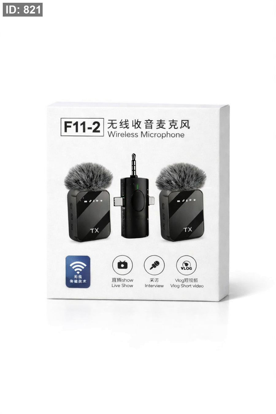 مايك لاسلكي احترافي من نوع F11-2 مصمم لتسجيل صوت نقي وواضح بجودة عالية، مناسب للبث المباشر، تصوير الفيديو، المقابلات وصناعة المحتوى.