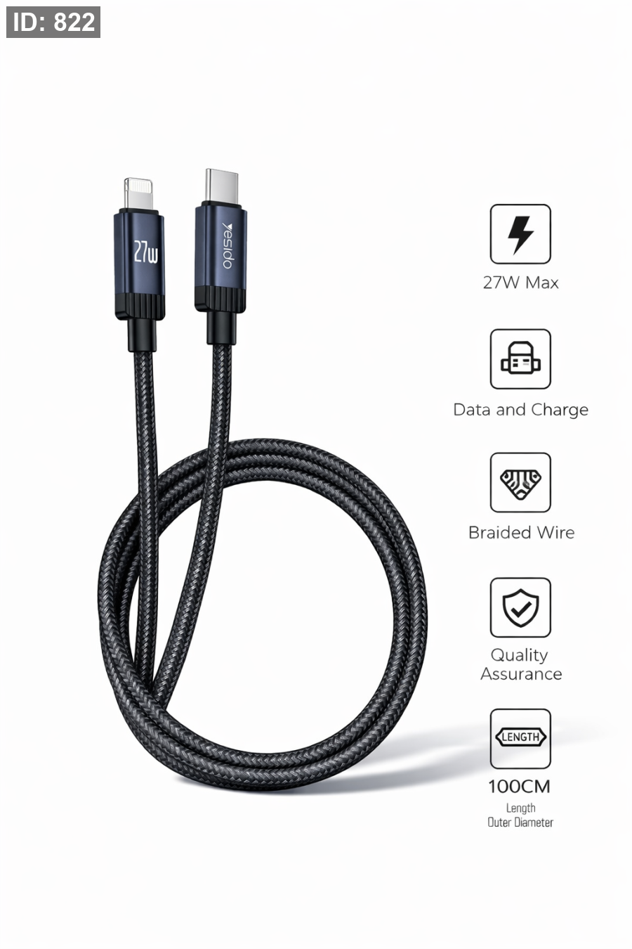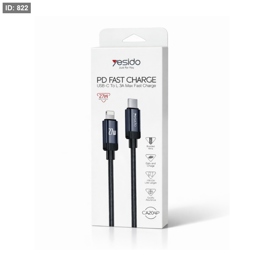 كيبل شحن سريع من شركة Yesido يدعم تقنية PD بقدرة تصل إلى 27W، مصمم لشحن أجهزة الآيفون بسرعة وكفاءة عالية. يتميز بجودة تصنيع قوية وسلك مجدول لتحمل الاستخدام اليومي، مع دعم نقل البيانات والشحن بنفس الوقت.