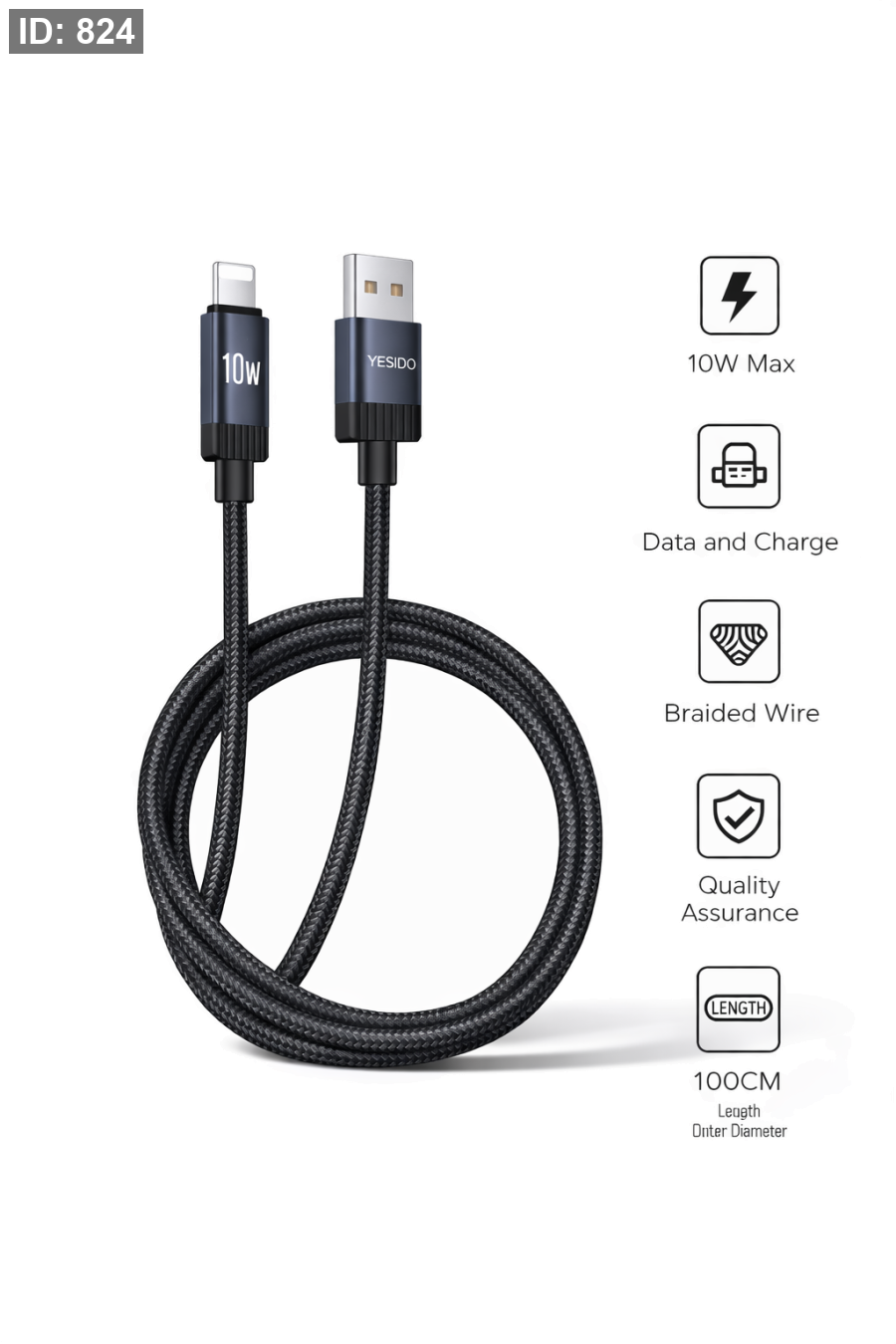 كيبل شحن من Yesido مصمم لشحن أجهزة الآيفون بكفاءة وثبات، مع دعم نقل البيانات. يتميز بتصميم متين وسلك مجدول يتحمل الاستخدام اليومي، ويعطي أداء مستقر أثناء الشحن أو نقل الملفات.