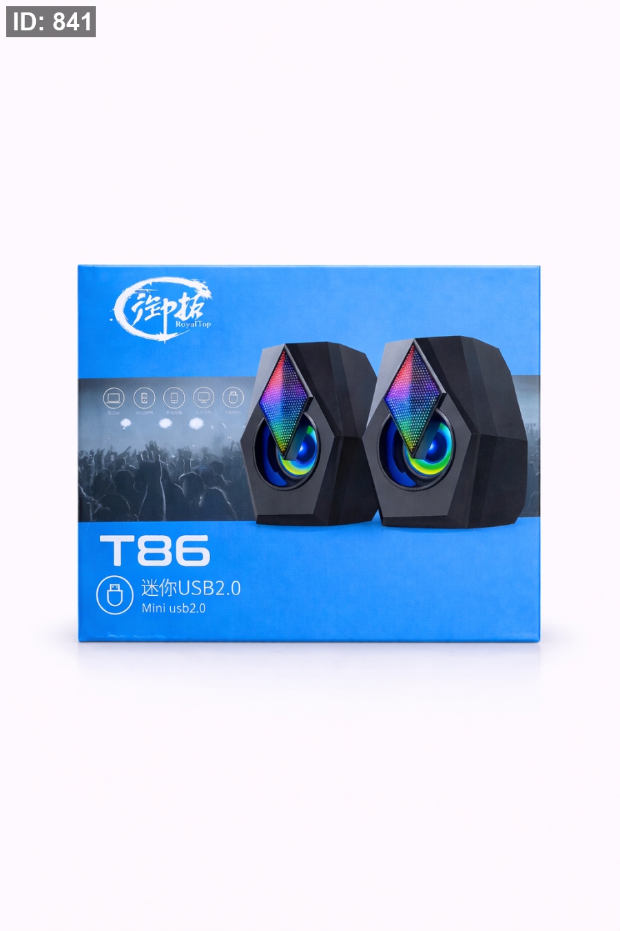 سماعات كمبيوتر بتصميم عصري مع إضاءة RGB ملونة، تعطي صوت واضح ومناسب للاستخدام اليومي على الكمبيوتر أو اللابتوب. تصميمها المميز يضيف لمسة جمالية لأي مكتب.