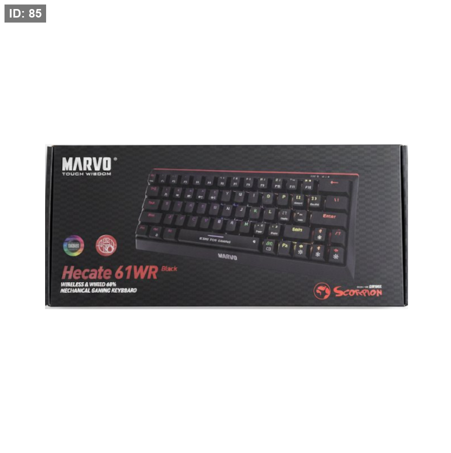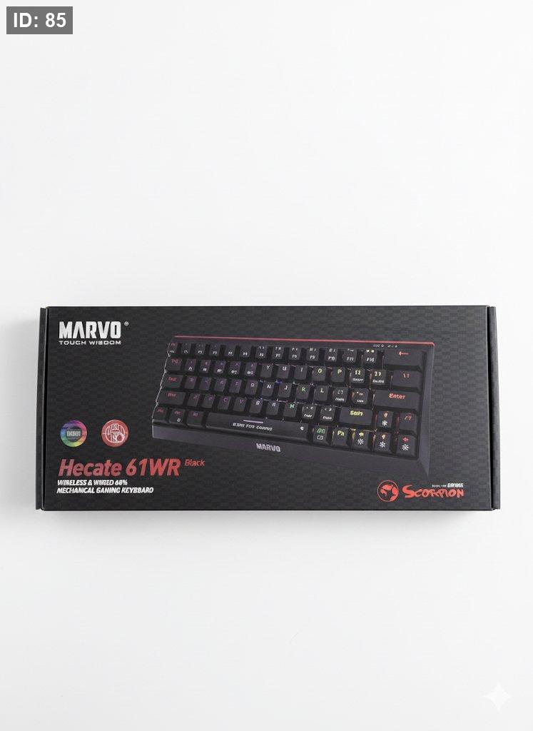 لوحة مفاتيح Marvo Hecate 61WR: كيبورد ميكانيكي مدمج بتصميم 60% مع 63 مفتاحًا، يدعم ثلاثة أوضاع اتصال (USB‑C أسلكي، Bluetooth 5.0، و2.4 GHz لاسلكي) لمرونة مثالية في الاستخدام. يحتوي على مفاتيح ميكانيكية تتحمّل حتى 50 مليون نقرة، وإضاءة “Rainbow” معدّلة بـ 12 نمطًا، مع دعم Anti‑Ghosting كامل بواسطة N‑Key Rollover. البطارية الداخلية بقوة 1000 mAh تمنحك تشغيلًا طويل الأمد، والتصميم الصغير يوفّر مساحة كبيرة لتحركات الماوس.