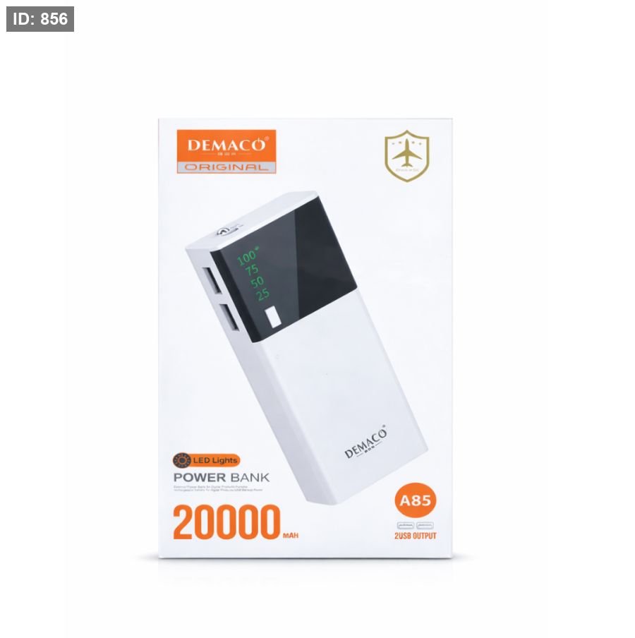 باور بانك قوي من DEMACO بسعة 20000mAh، مصمم ليعطيك شحن سريع وموثوق لأجهزتك طوال اليوم. مناسب للاستخدام اليومي والسفر، مع شاشة LED توضح نسبة الشحن بشكل دقيق.