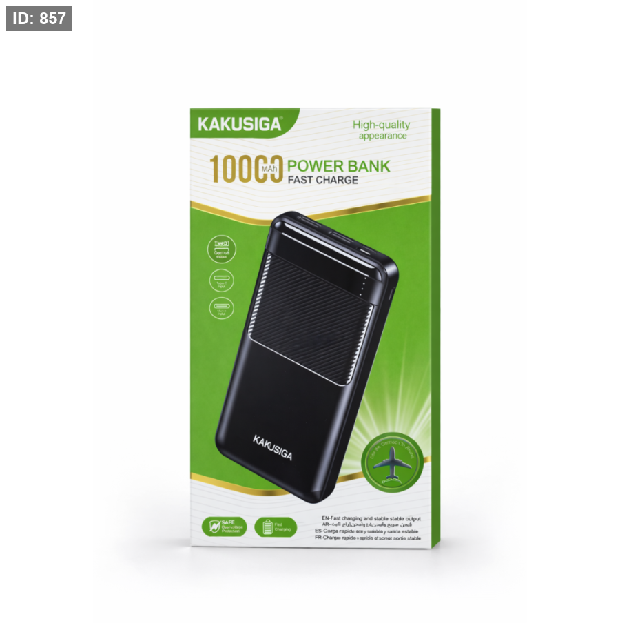 باور بانك عملي وأنيق من KAKUSIGA بسعة 10000mAh، مناسب للاستخدام اليومي ويعطيك شحن سريع وثابت لجميع أجهزتك. تصميم مريح وخفيف وسهل الحمل، مثالي للسفر والطلعات.