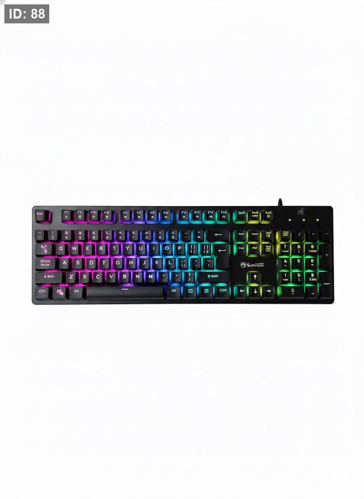 لوحة مفاتيح Marvo K604 (Soldat 20): كيبورد غشائي سلكي مزوّد بـ 104 مفتاحًا مع إضاءة RGB مبهرة، ومفاتيح تدوم حتى 10 ملايين ضغطة. تأتي بدعم Anti‑Ghosting يصل إلى 19 مفتاحًا للتسجيل الدقيق أثناء الضغطات السريعة، وتضم 12 اختصارًا وسائط لتجربة استخدام مرنة وسريعة. ويمتد كابل USB بطول 1.5 م لضمان ترتيب جيد ومساحة لعب نظيفة.