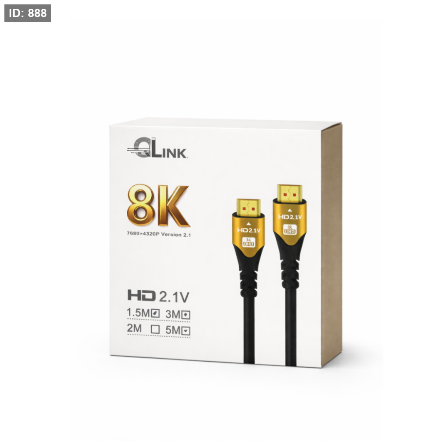 كيبل HDMI احترافي بدقة 8K من QLINK، مصمم لنقل الصورة والصوت بأعلى جودة ممكنة بدون تقطيع أو تأخير. مناسب للتلفزيونات الحديثة، أجهزة الألعاب، والكمبيوتر، مع دعم كامل لأحدث تقنيات العرض.